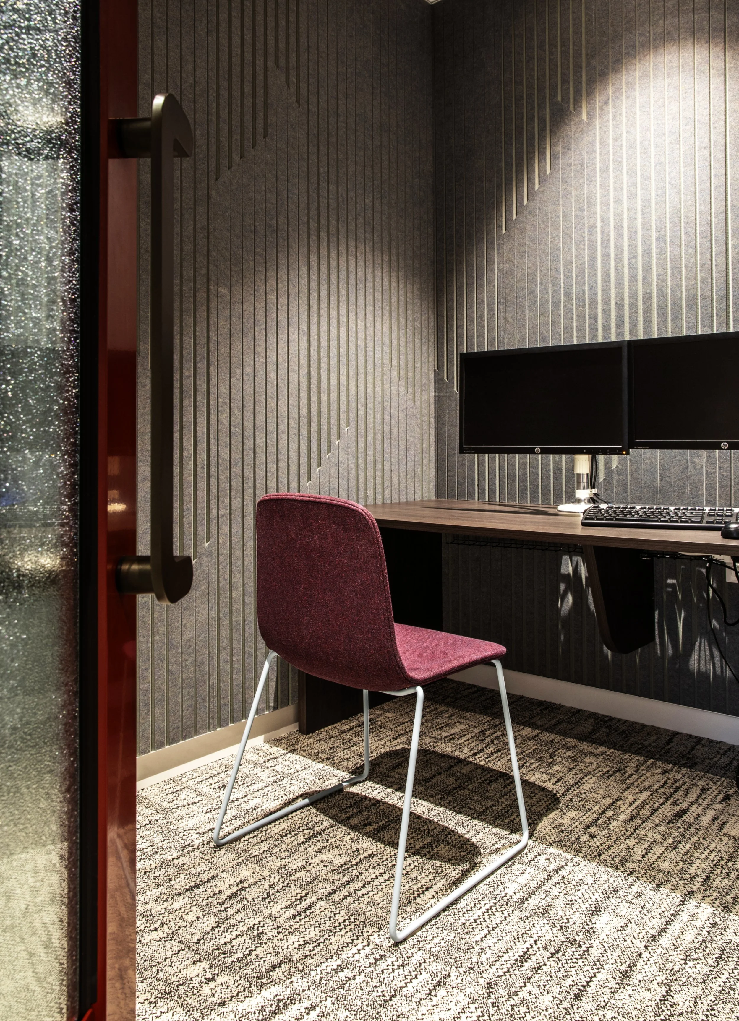 The environment provides a level of mood and depth that is not always provided within an office environment. The spaces are layered with rich materials and furniture that enhance the human connection and open conversation with a relaxed yet professional feel.